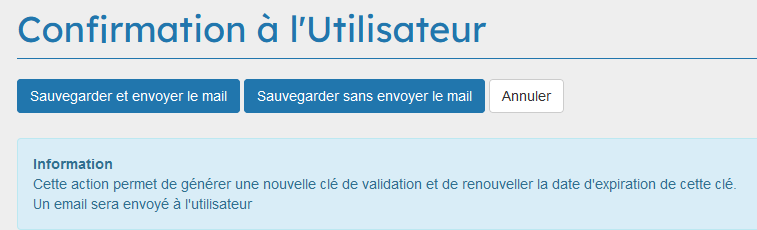 Confirmer : Enregistrer et envoyer le mail à l’utilisateur