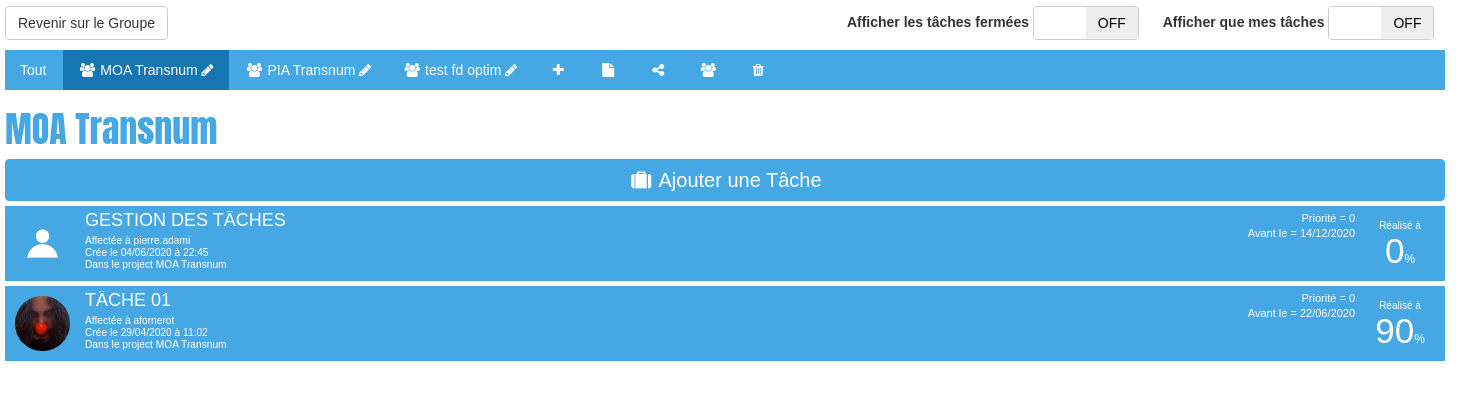 Reevenir à la page d'accueil du groupe dès la création/modfication de tâches