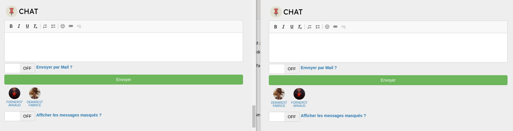 Vérifier l'apparition des avatars des users connectés (visibles sous l'espace de saisie du Chat)