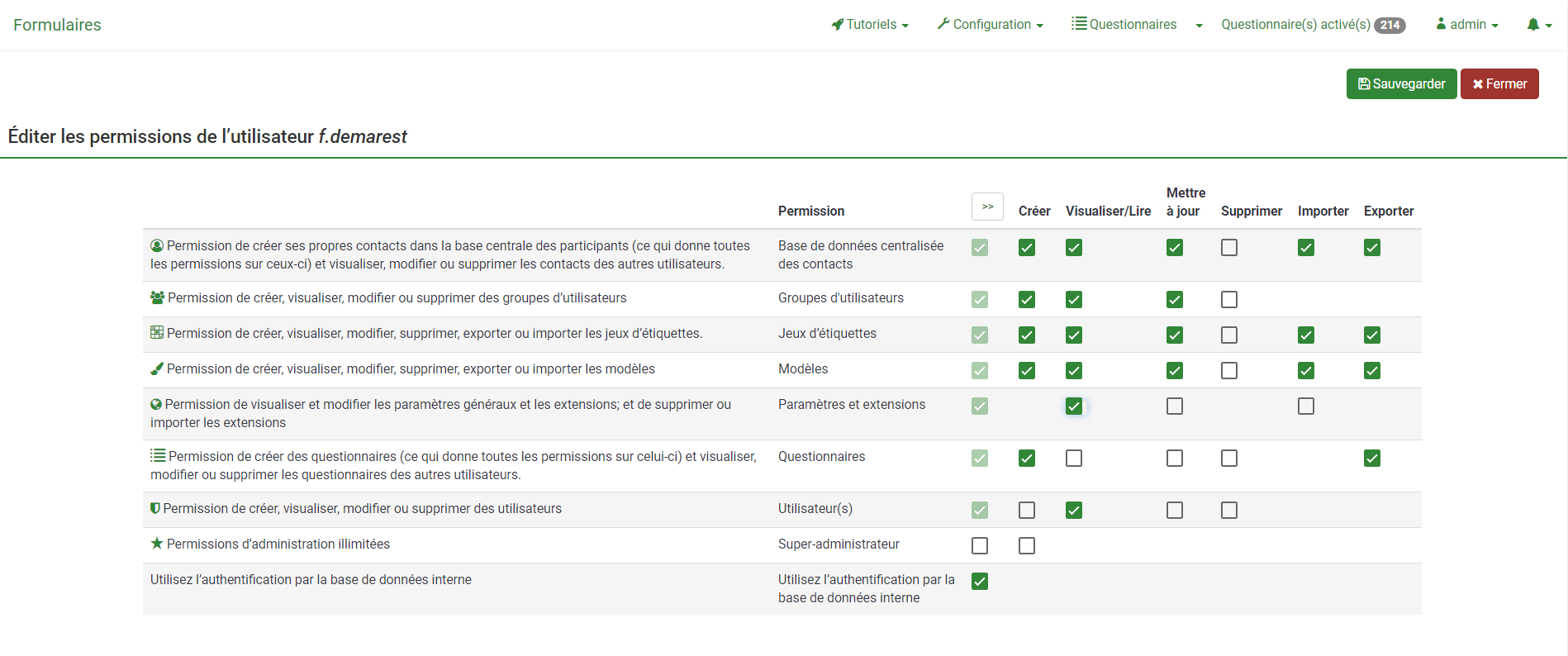 Faire un script de création automatique de comptes LimeSurvey pour tous les utilisateurs du portail avec les permissions indiquées en PJ