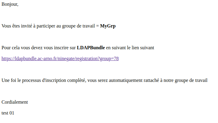 Un foi l'inscription complète il sera automatiquement rattaché au groupe d'invitation