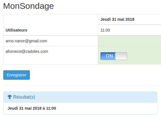 Pour celui qui a construit le sondage, les résultats sont accessibles en cliquant sur le nom du sondage. Est-il de mettre dans la page "Mes sondages" et à côté de "Editer" un lien intitulé "Vues des résultats"